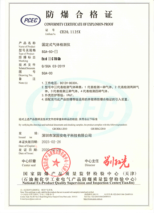 該證書表示可燃?xì)怏w泄漏報警器具有防爆功能,是防爆產(chǎn)品必要的證書。是由國家認(rèn)可的檢驗機構(gòu)出具的證明,證明樣機符合相關(guān)標(biāo)準(zhǔn)中防爆型式的要求。