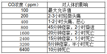 一氧化碳濃度值達(dá)到多少PPM對人體有害?